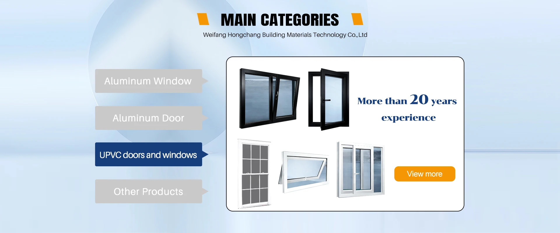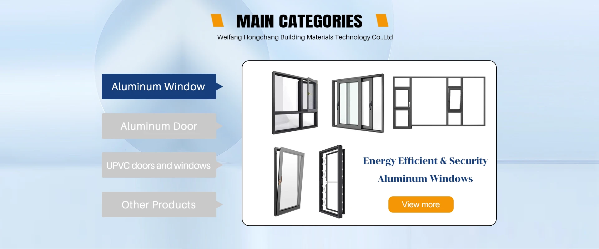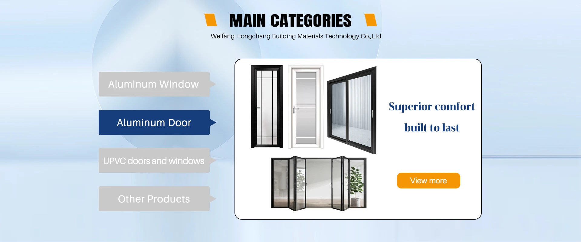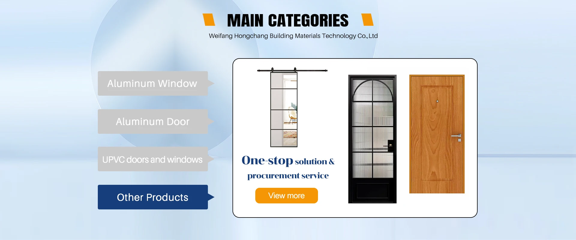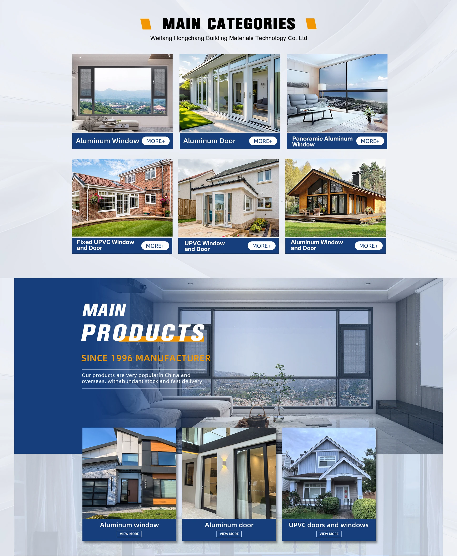 Main categories: Aluminum Doors, Aluminum Windows, UPVC Window, Fire Door, Industrial Door
